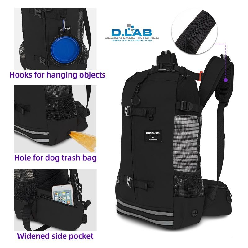 Compared to the conventional small dog carrier, our pet backpack carrier for small dogs is designed with the extra zipper pocket on the side and front, so it’s convenient for you to hold a day’s worth of pet treats and poop bags, as well as a few personal items.